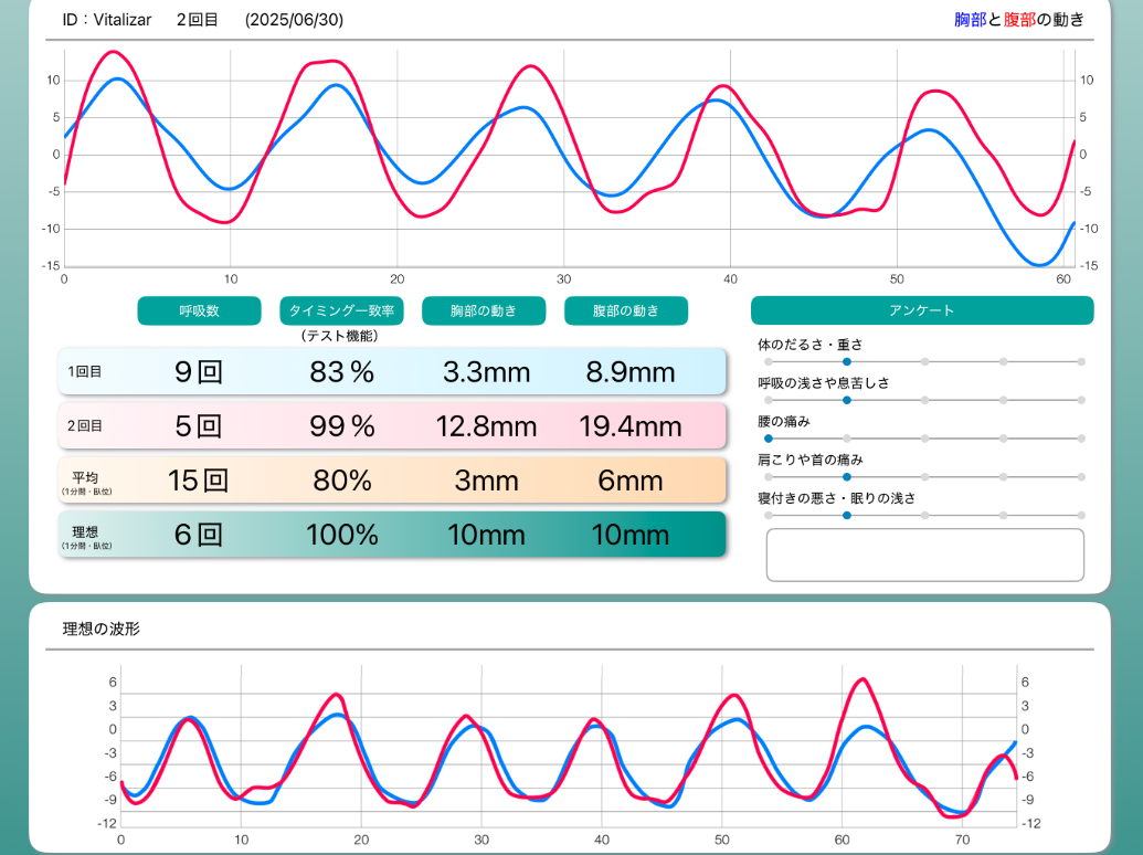 今年はさらに、タブレットを使った測定で呼吸の状態をグラフで評価できる「呼吸可視化アプリ」も導入します。呼吸の点数に加えて、目に見える形で自分の体の状態を把握できることで、よりいっそう変化を実感できるようになります。栃木県では最初の導入となります。